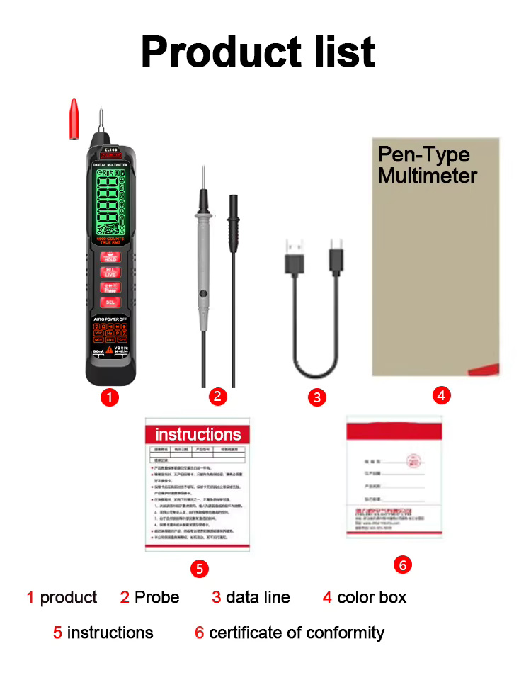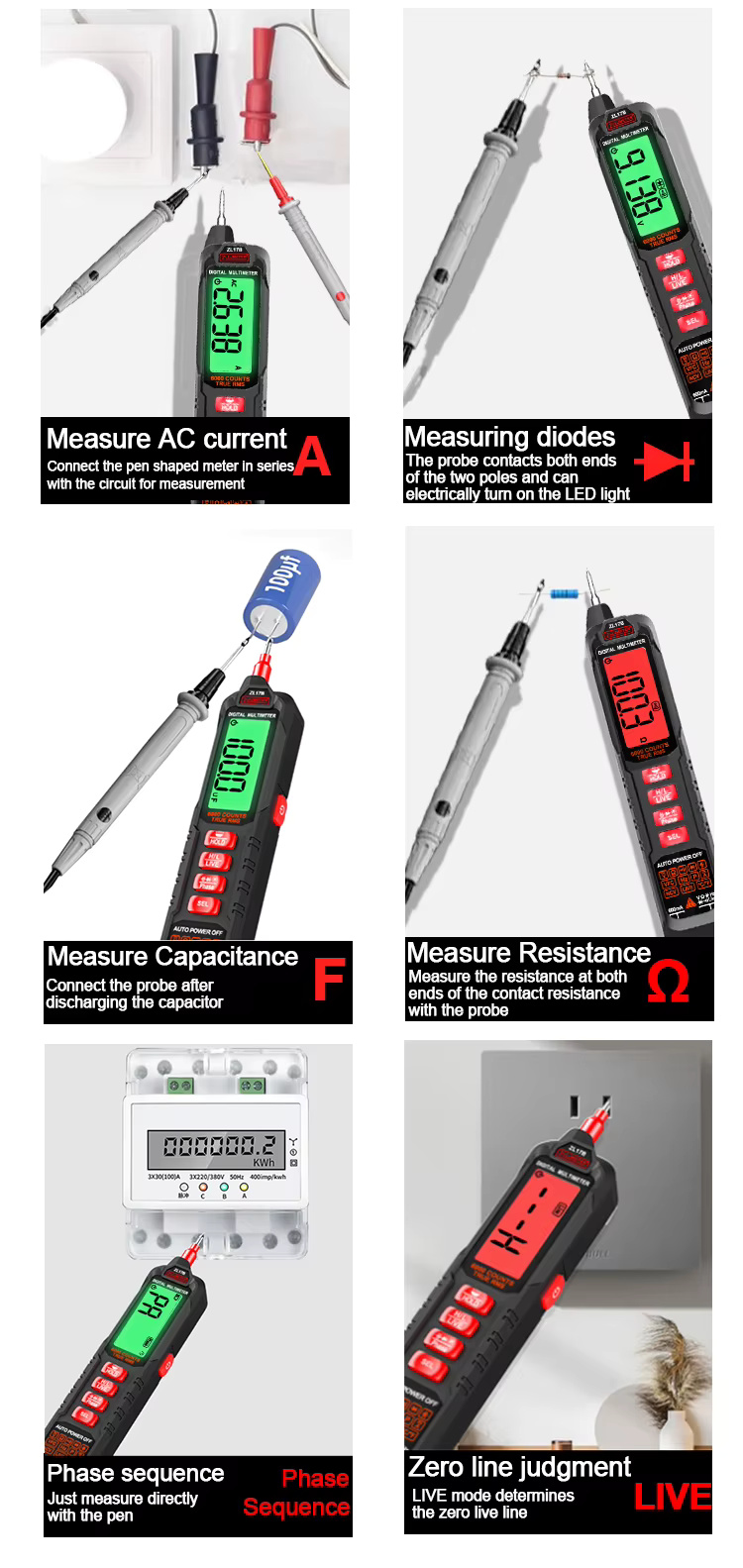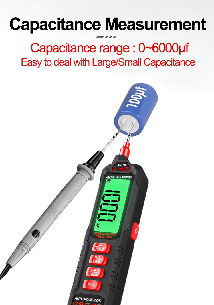 6000 Counts Smart Digital Multimeter AC DC Voltage Detector Pen Capacitance Resistance NCV True RMS Multimeter