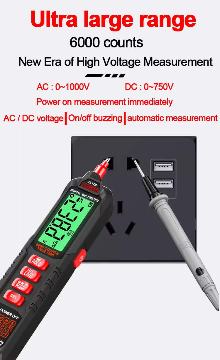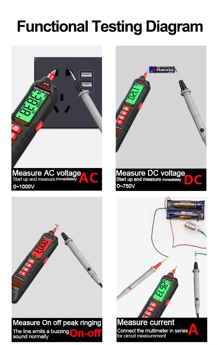 | Features | 6000 Counts, Smart and Manual Mode, Beep on/off detection, Data Hold, Phase Sequence, Live line Detection, NCV, Automatic Shutdown, Flashlight Illumination |